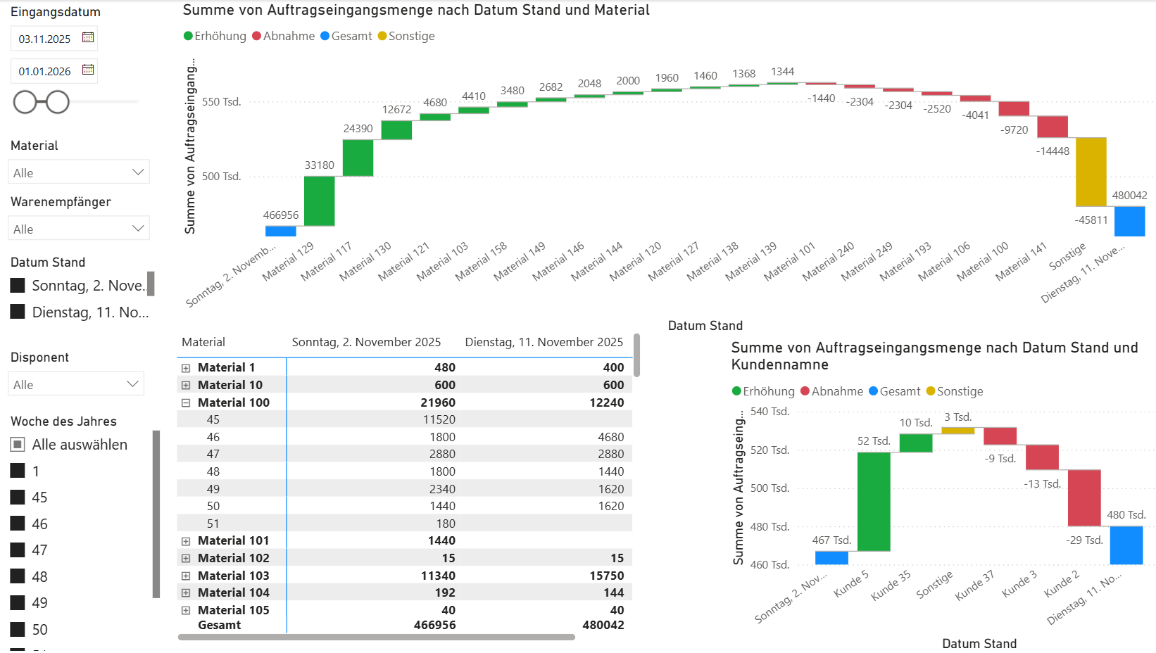 Transparenz über Veränderungen im Auftragseingang