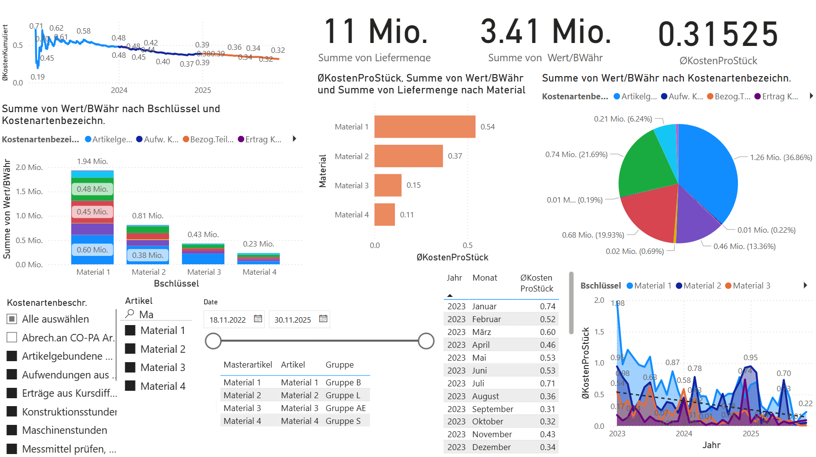 Transparenz über Werkzeugkosten pro Material